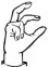 На ћирилици написано ПЕРКО БРЗИЋ састоји се из 10 слова [?]. Исписано ћириличном једноручном азбуком за глувонеме: